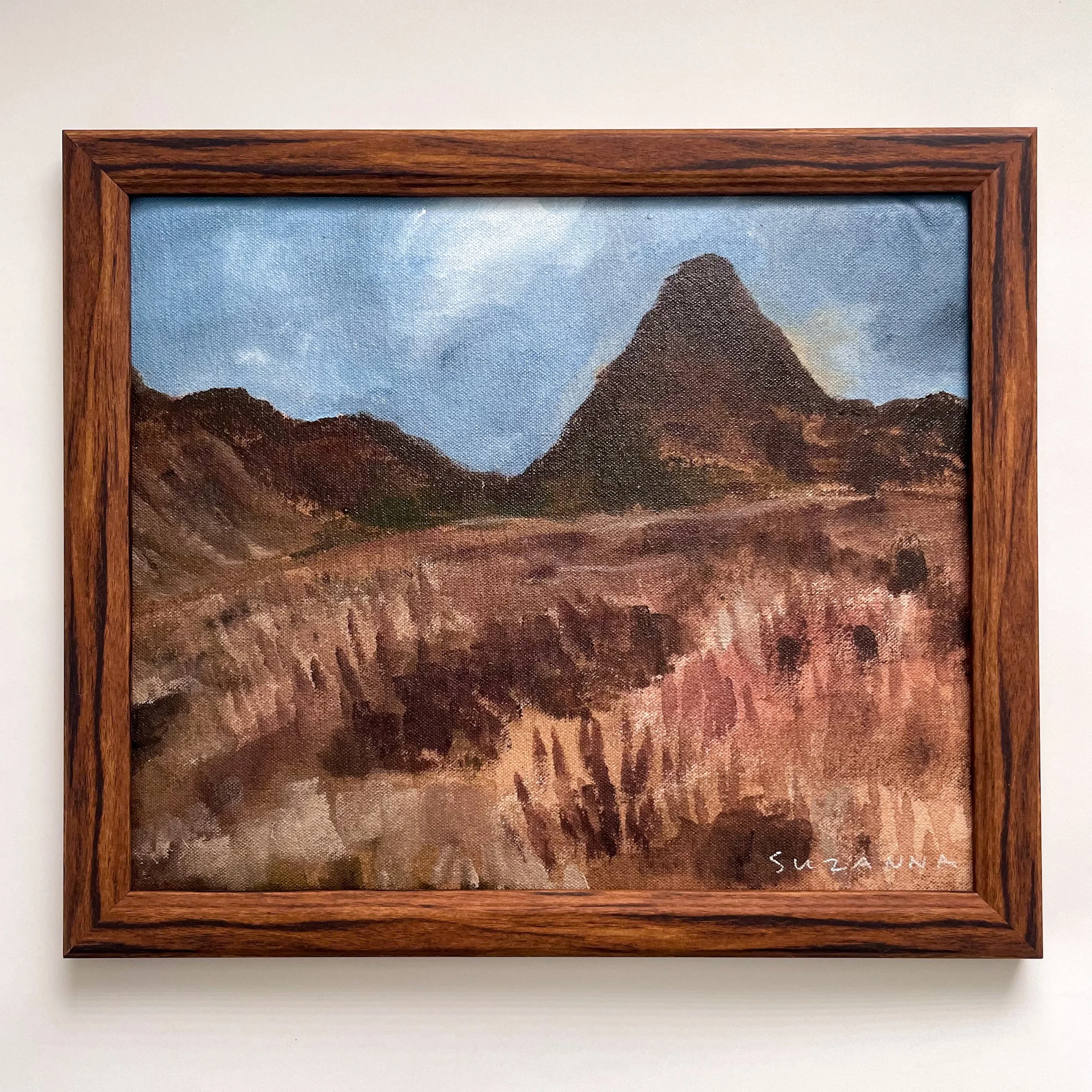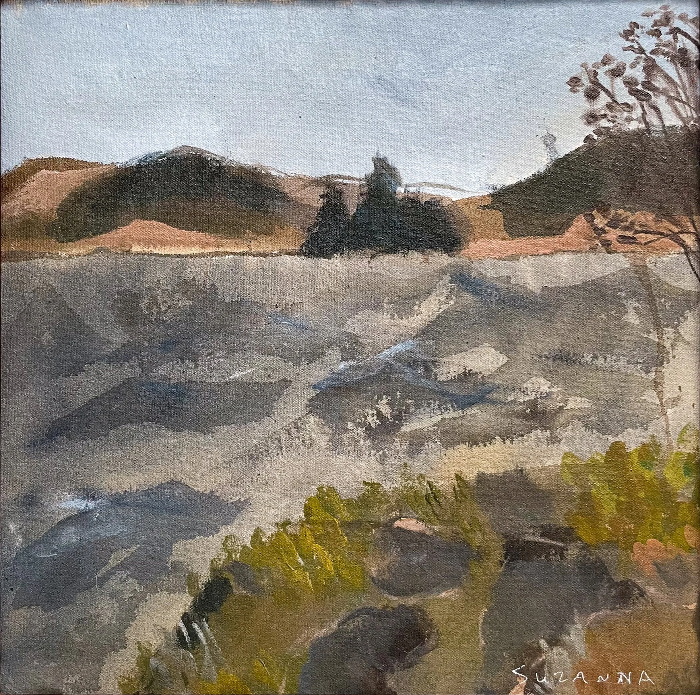 • 14×14” acrylic on on raw canvas, framed in plein air oak frame
